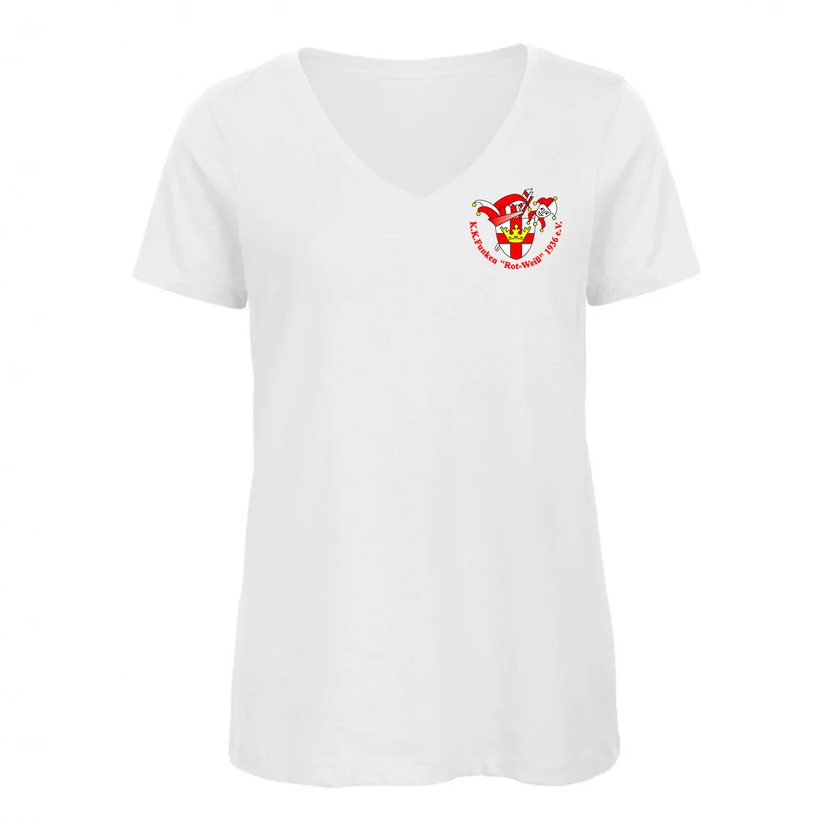 Women T-Shirt B&C lnspire V T bedruckt mit KK Funken Rot-Weiß